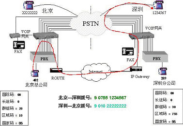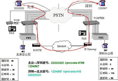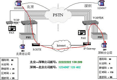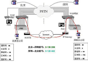 1) 例:北京客户可以先拨入北京总公司,然后通过Internet和深圳分公司通话,如图3所示。